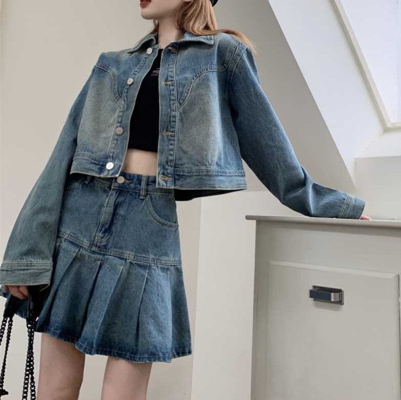 トレンドを押さえたクロップド丈ジャケット&ミニスカートデニムセットアップ