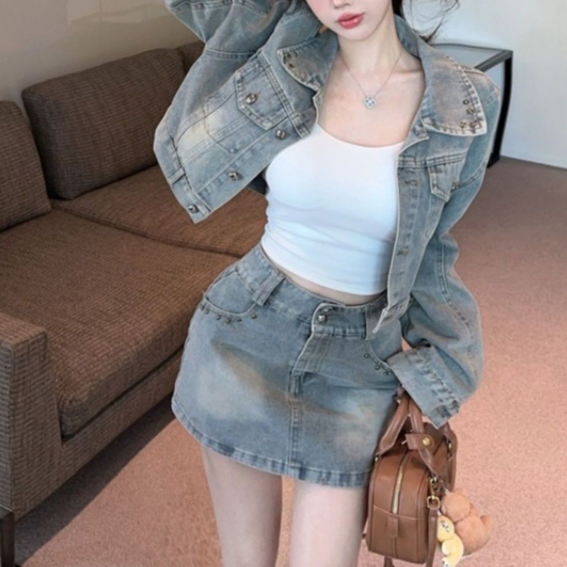 海外セレブ風スタッズ輝くデニムセットアップ