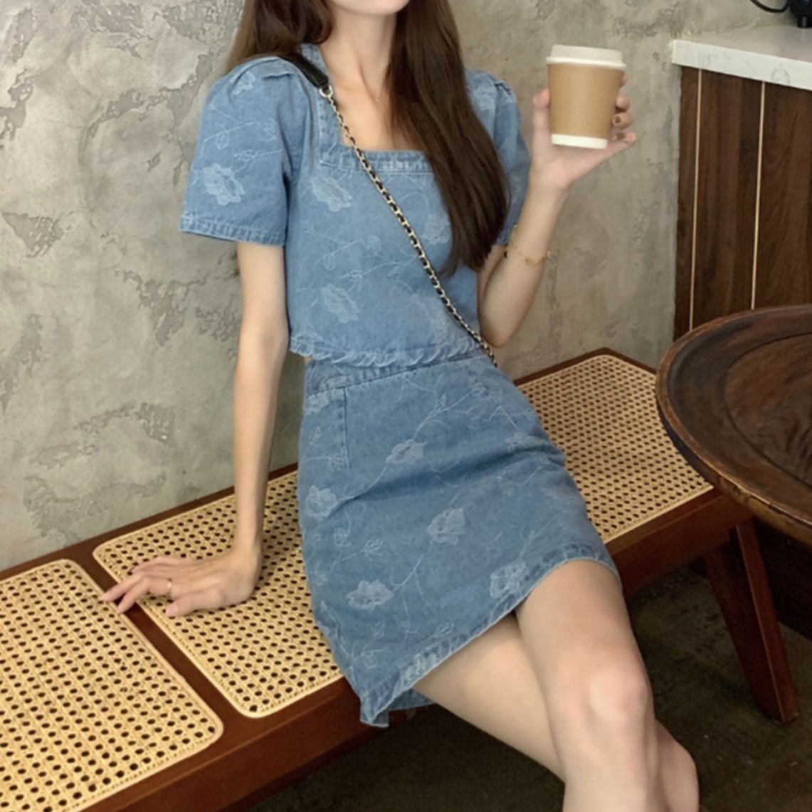 モダンな配色デザイン レディースデニムセットアップ スカートスタイルのブランド品
