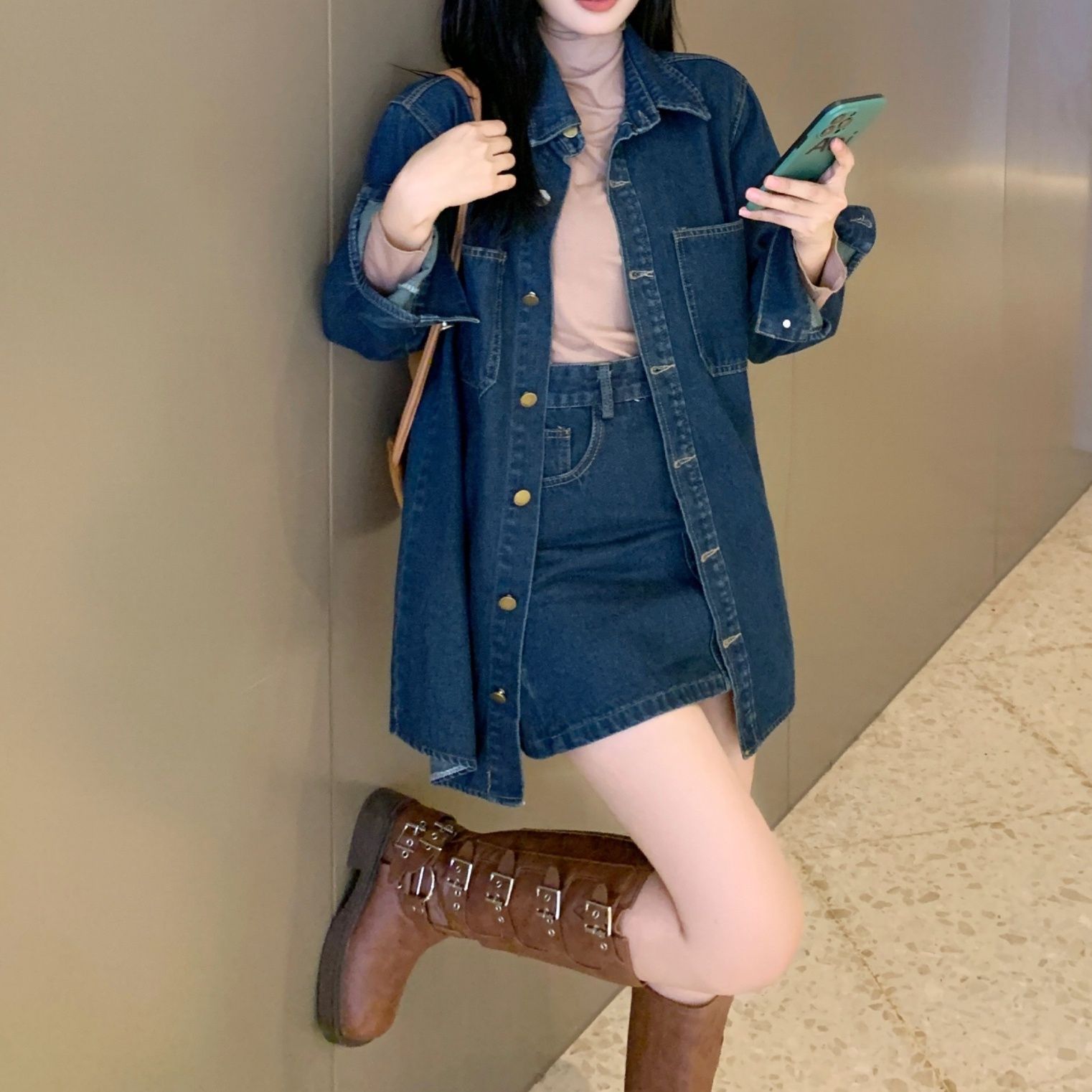 ゆったりジャケットミニスカートデニム上下コーデセット