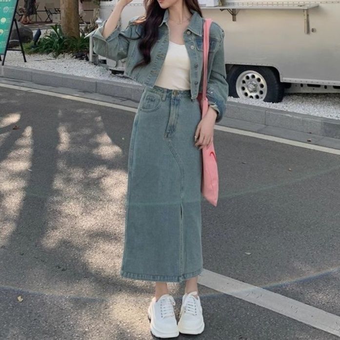 ヴィンテージ風ロングスカートデニム上下コーデセット