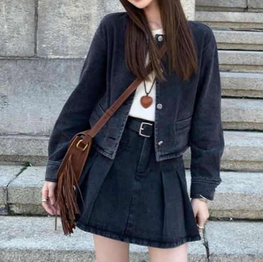 ゆったりとしたジャケットとミニスカートの絶妙なバランスが魅力のデニムセットです。