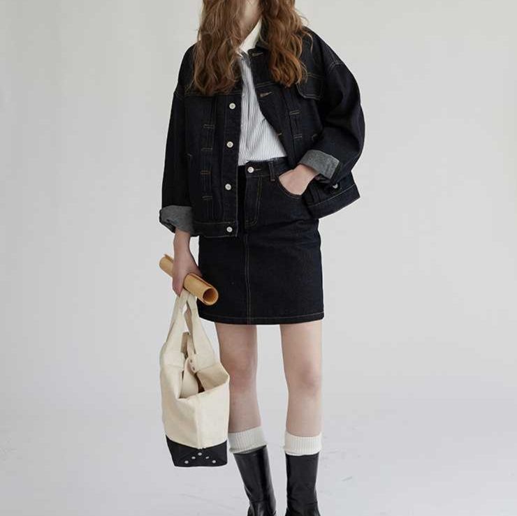 クラシカルなミニスカート型リジッドデニムセットアップ