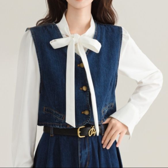 カジュアルなデニム素材に白いリボンを加わることで、甘さと大人っぽさのバランスが絶妙