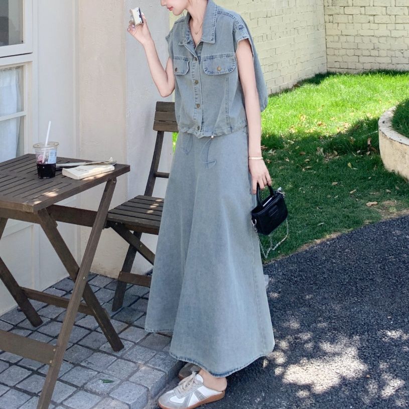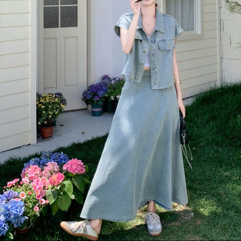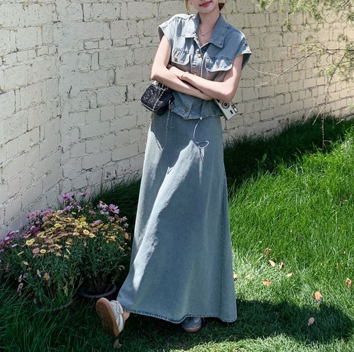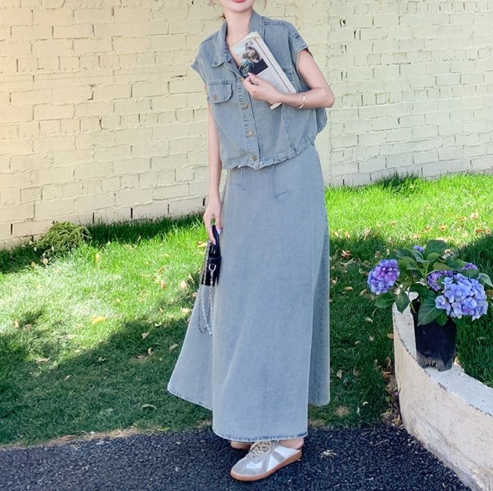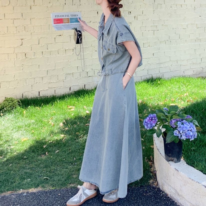 デニムセットアップの魅力を存分に引き出した、大人の余裕が感じられるスカートセットアップです。