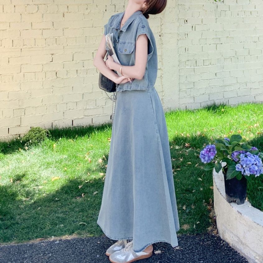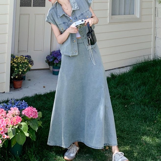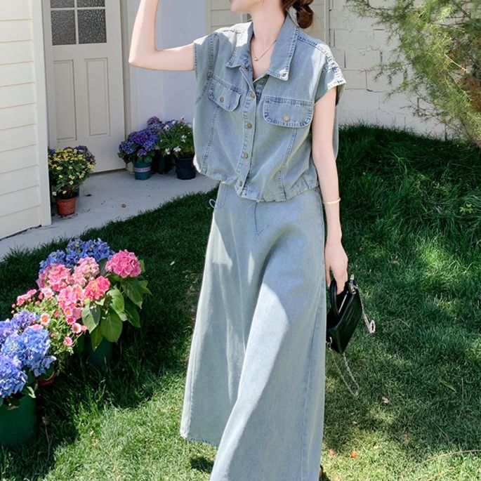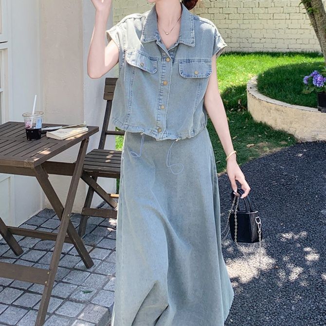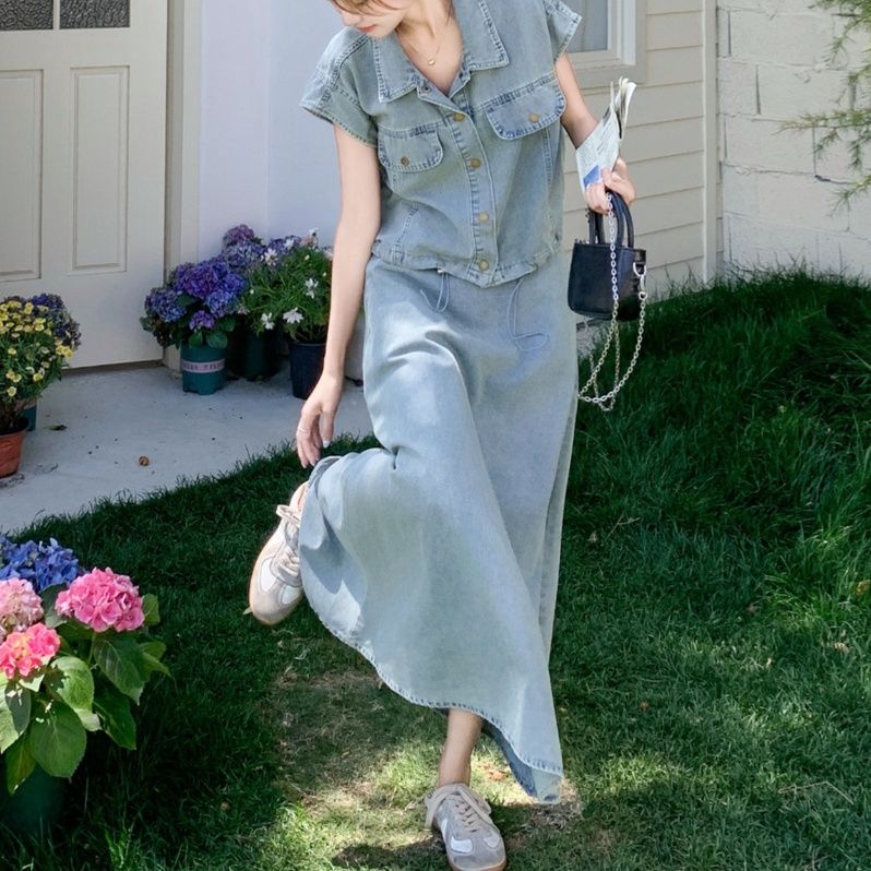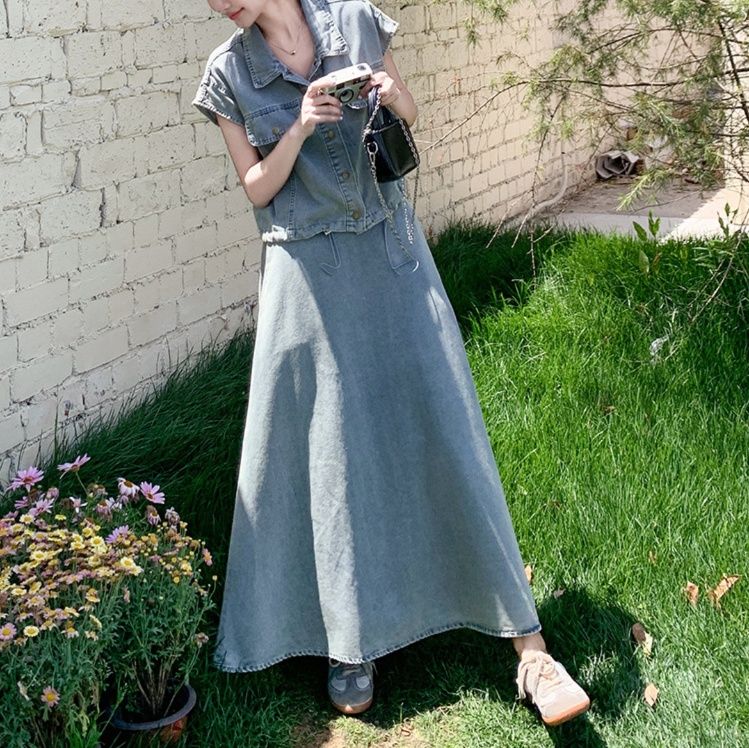 デニムセットアップの魅力を存分に引き出した、大人の余裕が感じられるスカートセットアップです。