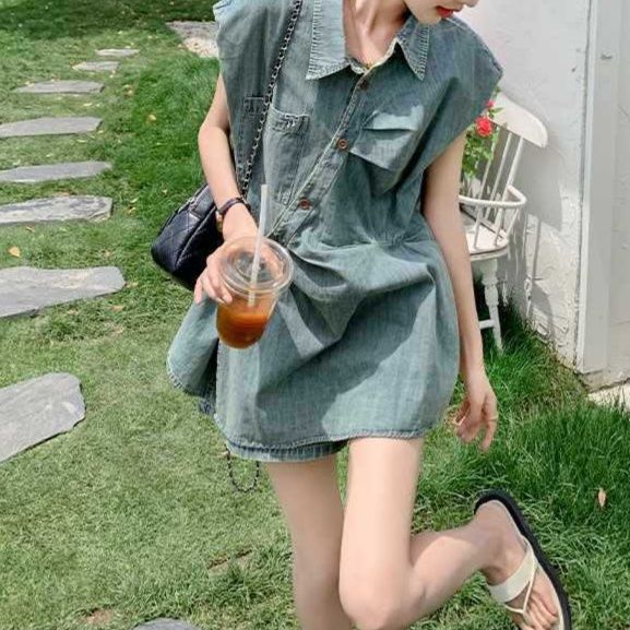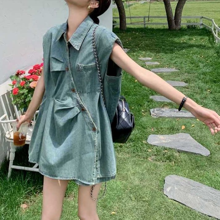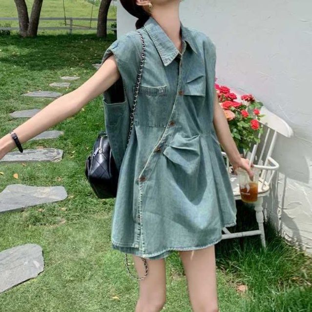 デニムセットアップの中でも涼やかな印象を与える一着。