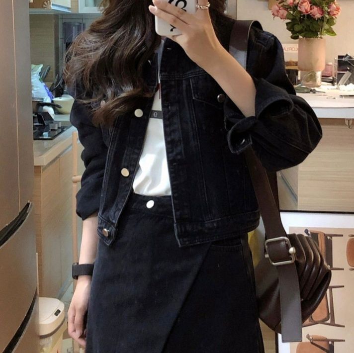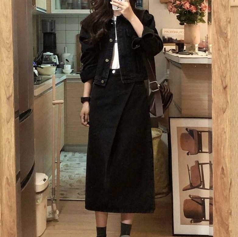 トレンド感あふれるデニムセットアップは、カジュアルながら洗練された印象を与えます。