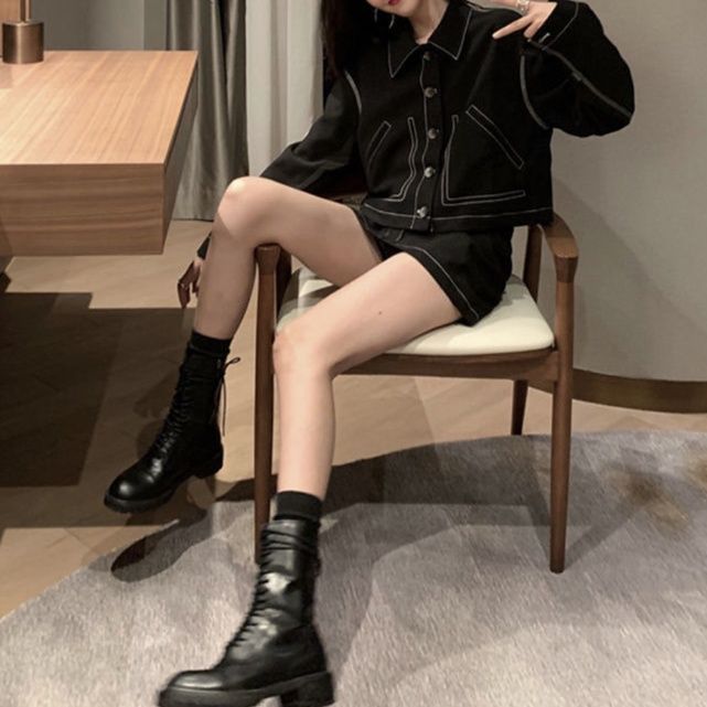 ジャケットの適度なオーバーサイズ感とミニスカートのバランスが今どきのこなれ感を演出
