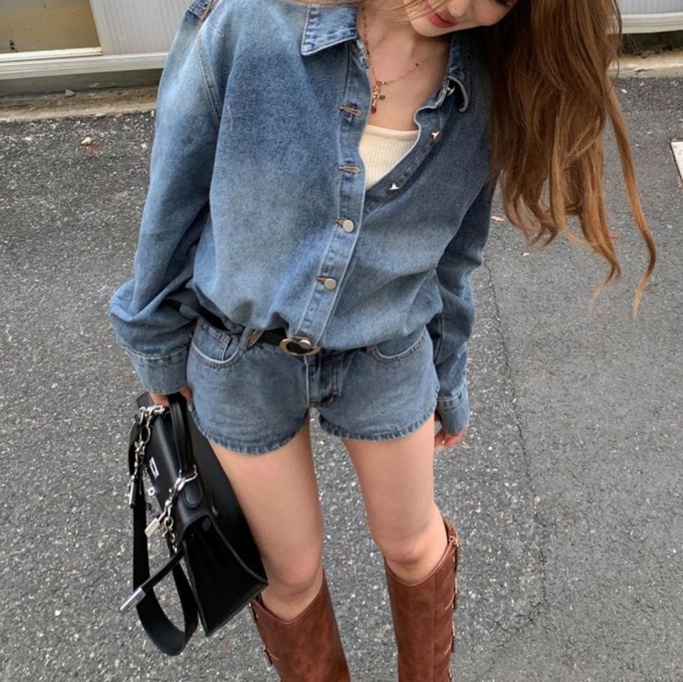 幅広いコーディネートに合わせやすいデニムセットアップで、カジュアルな中にも女性らしさを忘れない一着です。