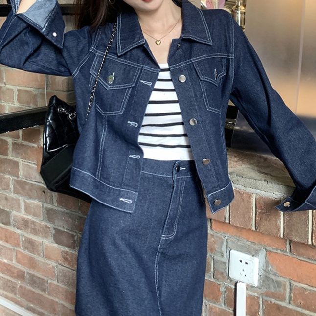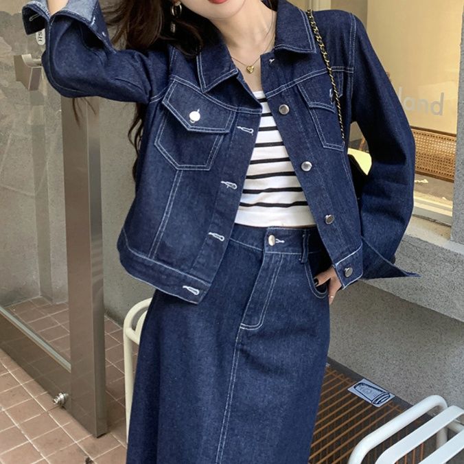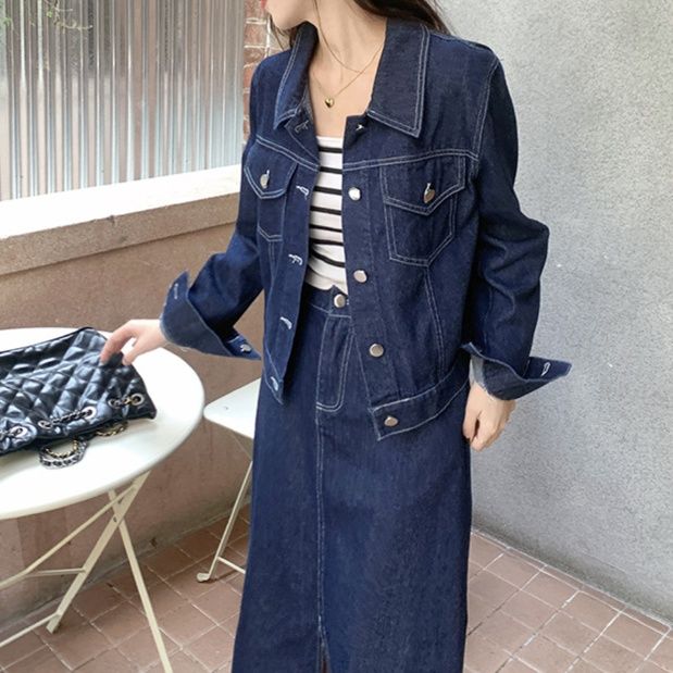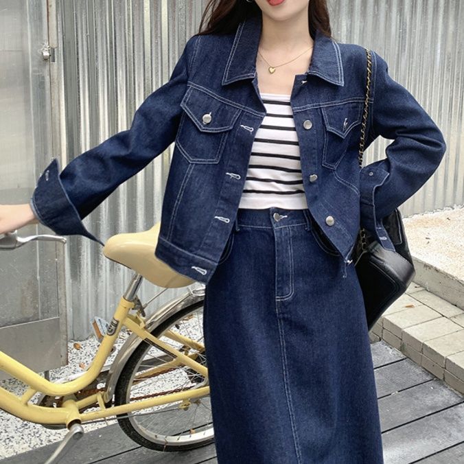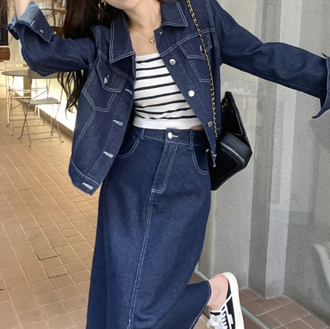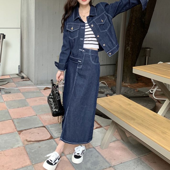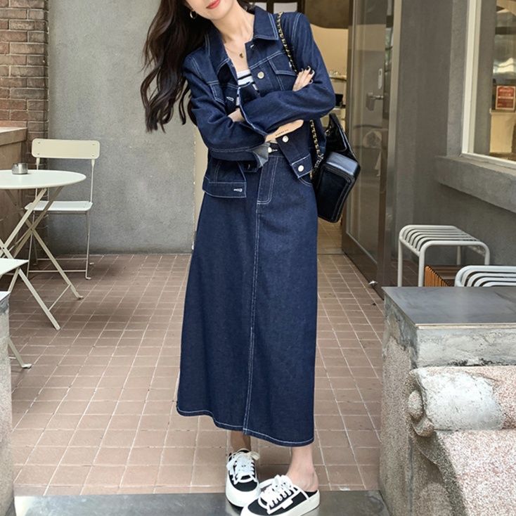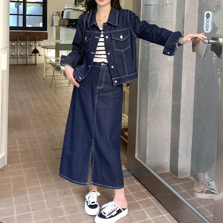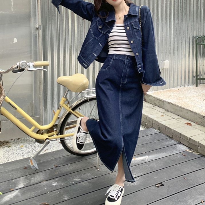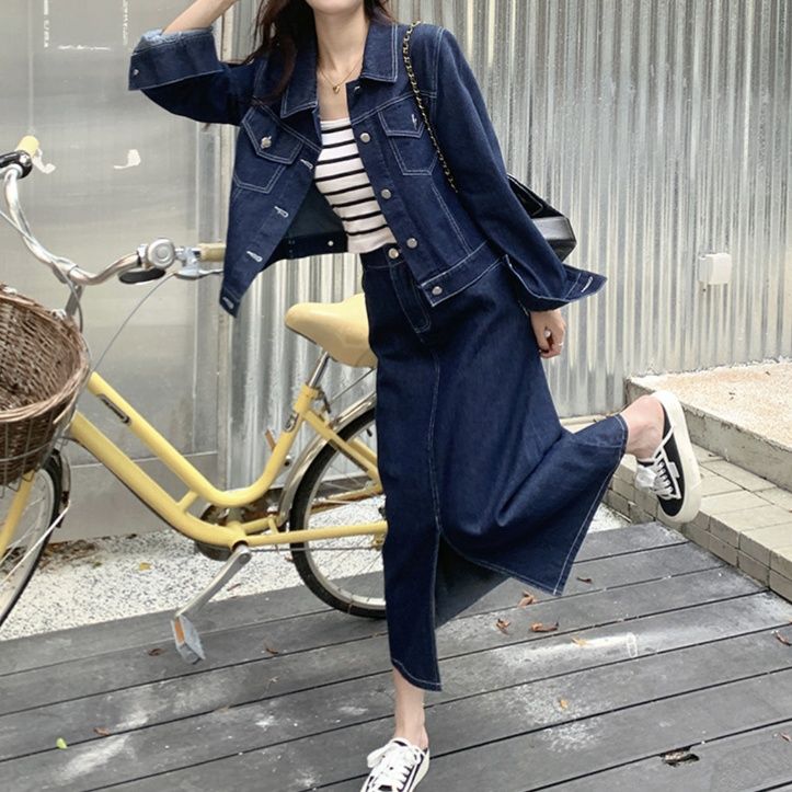 デニムセットアップの定番アイテムがスカートセットアップで登場。