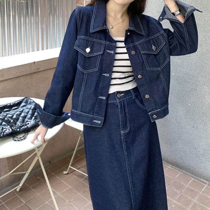 デニムセットアップながら上品な印象で、カジュアルからきれいめまで幅広いシーンで活躍します。