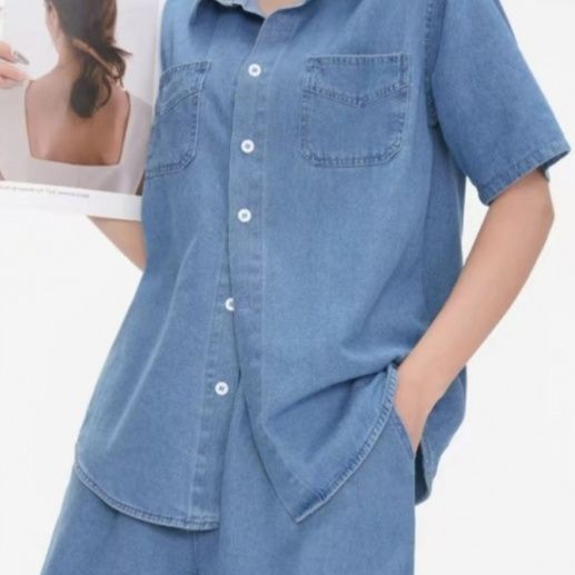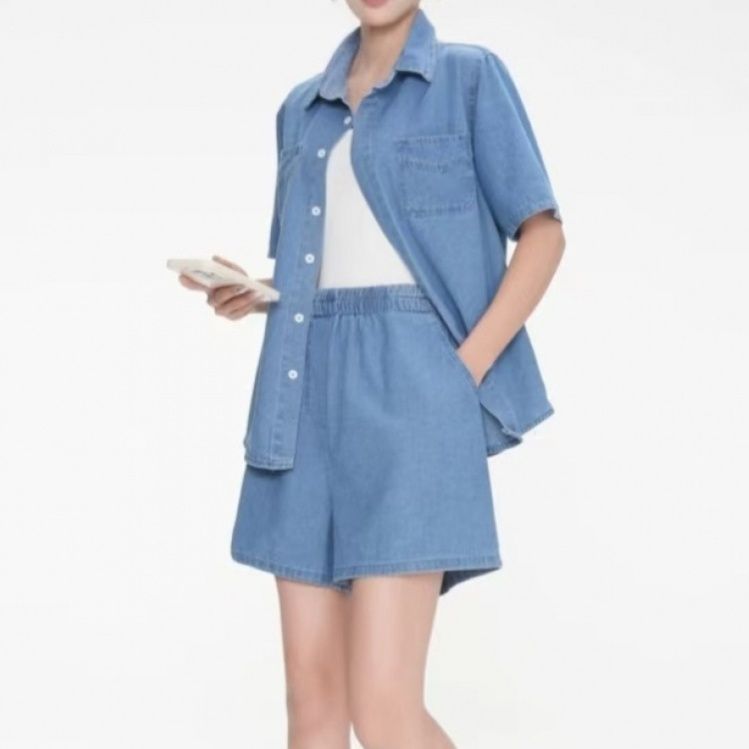 デニムセットアップの爽やかな着心地を実現したシャツセットアップです。