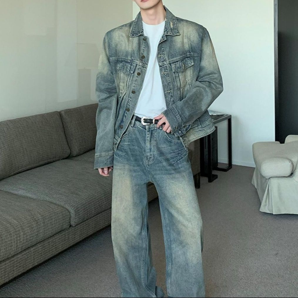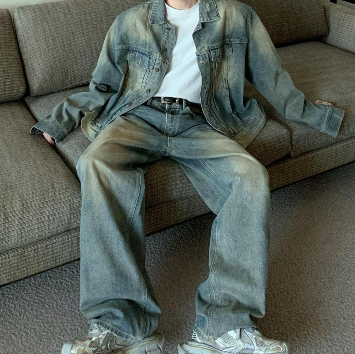ジージャンセットアップはカジュアルながらも洗練された印象を与え、白のインナーと合わせるだけで様になるデニムセットアップです。