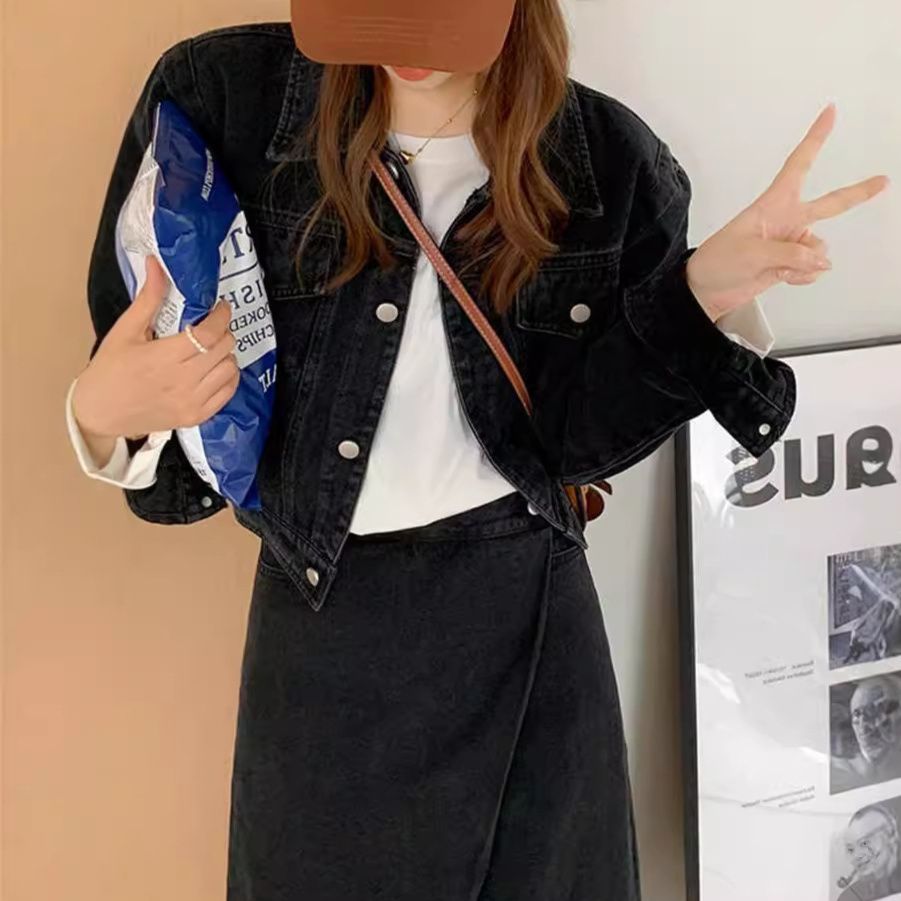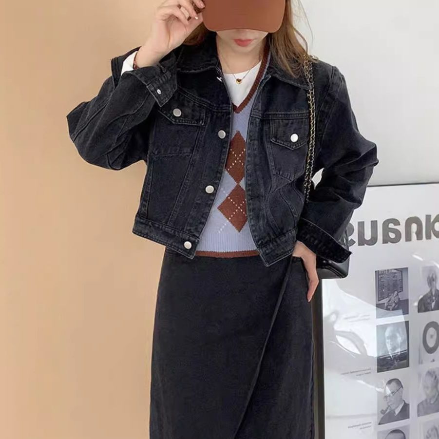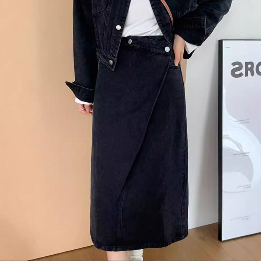 コンパクトなショート丈のジャケットとラップデザインスカートの組み合わせが今っぽいスタイルを演出します。