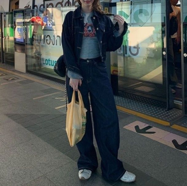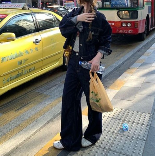 ボトムスは、ワイドパンツとミニスカートの二つのスタイルから選べるジージャンセットアップです。