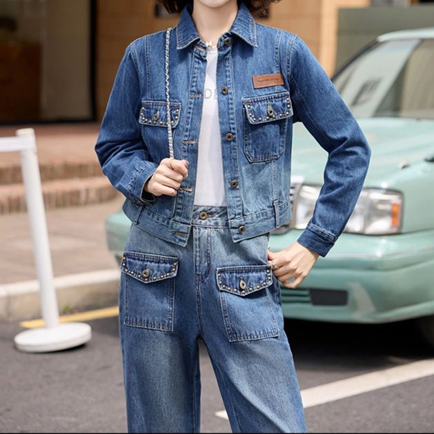こちらのデニムセットアップは、上品な大人の女性にぴったりのジージャンセットアップです。
