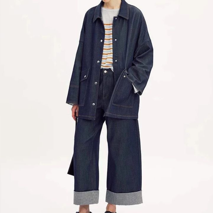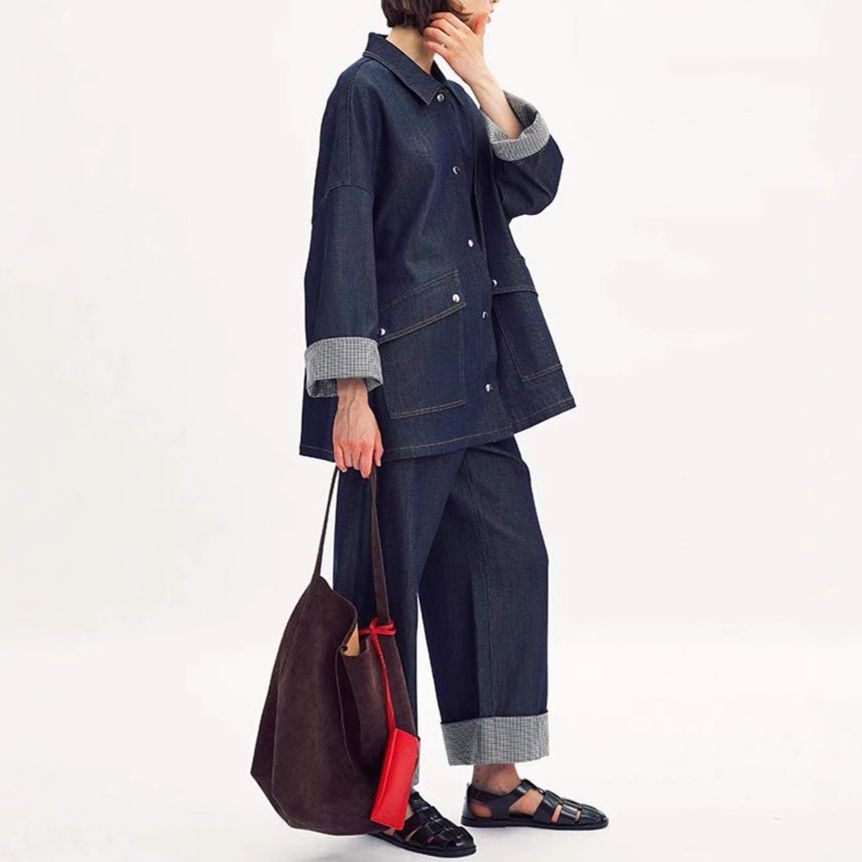 デニムセットアップならではのカジュアルながらも洗練された印象で、普段使いから軽いお出かけまで幅広いシーンで活躍します。