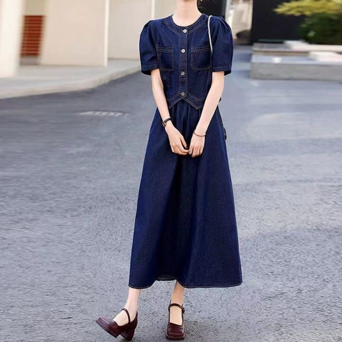 デニムセットアップならではのカジュアルさと女性らしさを兼ね備えた、デイリーからお出かけまで幅広く活躍する一着です。