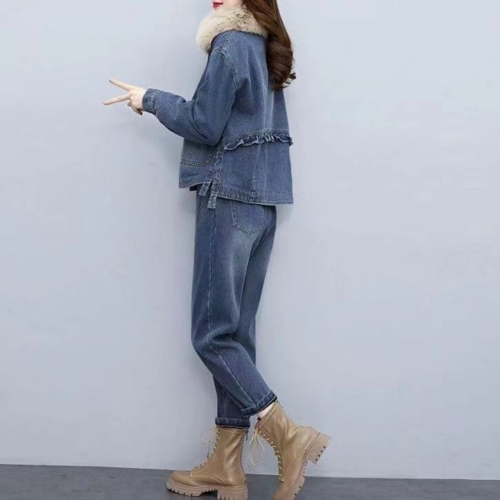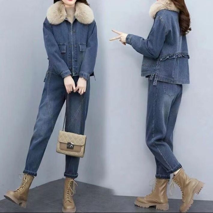 上品なファー襟がアクセントのジージャンセットアップです。