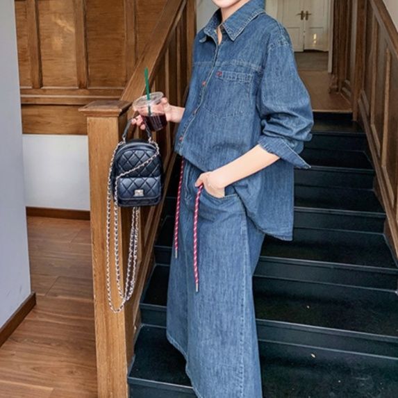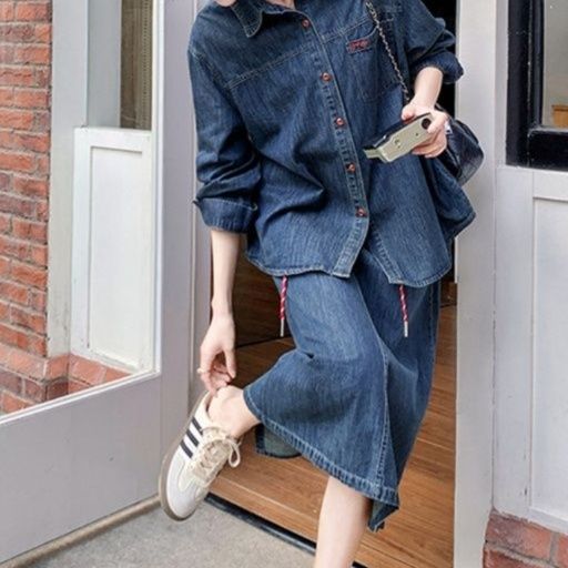 カジュアルで洗練された印象を与えるデニムセットアップです。