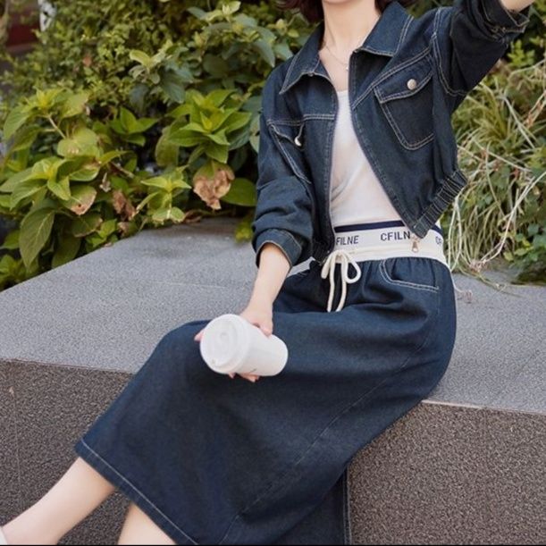 カジュアルながらも女性らしいシルエットが魅力のジージャンセットアップです。