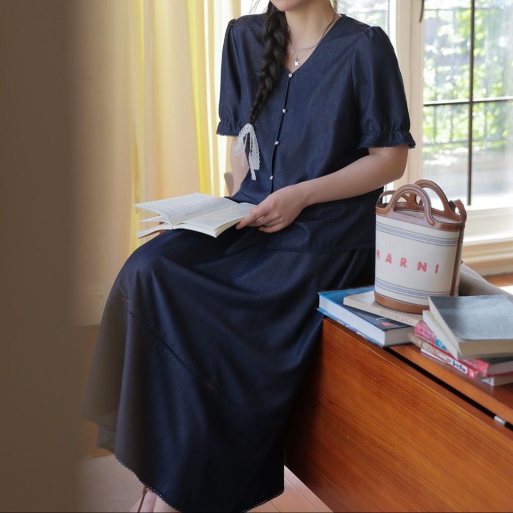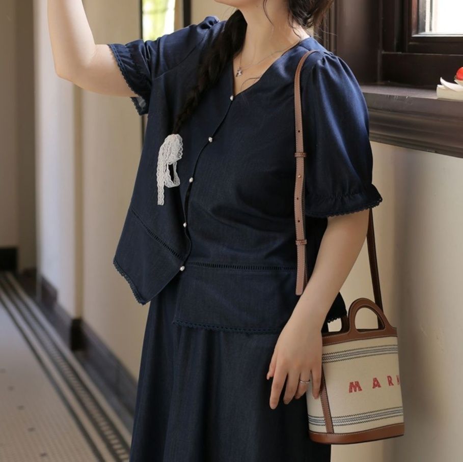 裾のレース使いや胸元のボタンデザインなど、細部まで丁寧な仕上がり
