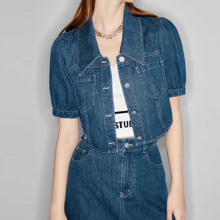 短めの丈感とパフスリーブデザインで女性らしい柔らかな印象を演出
