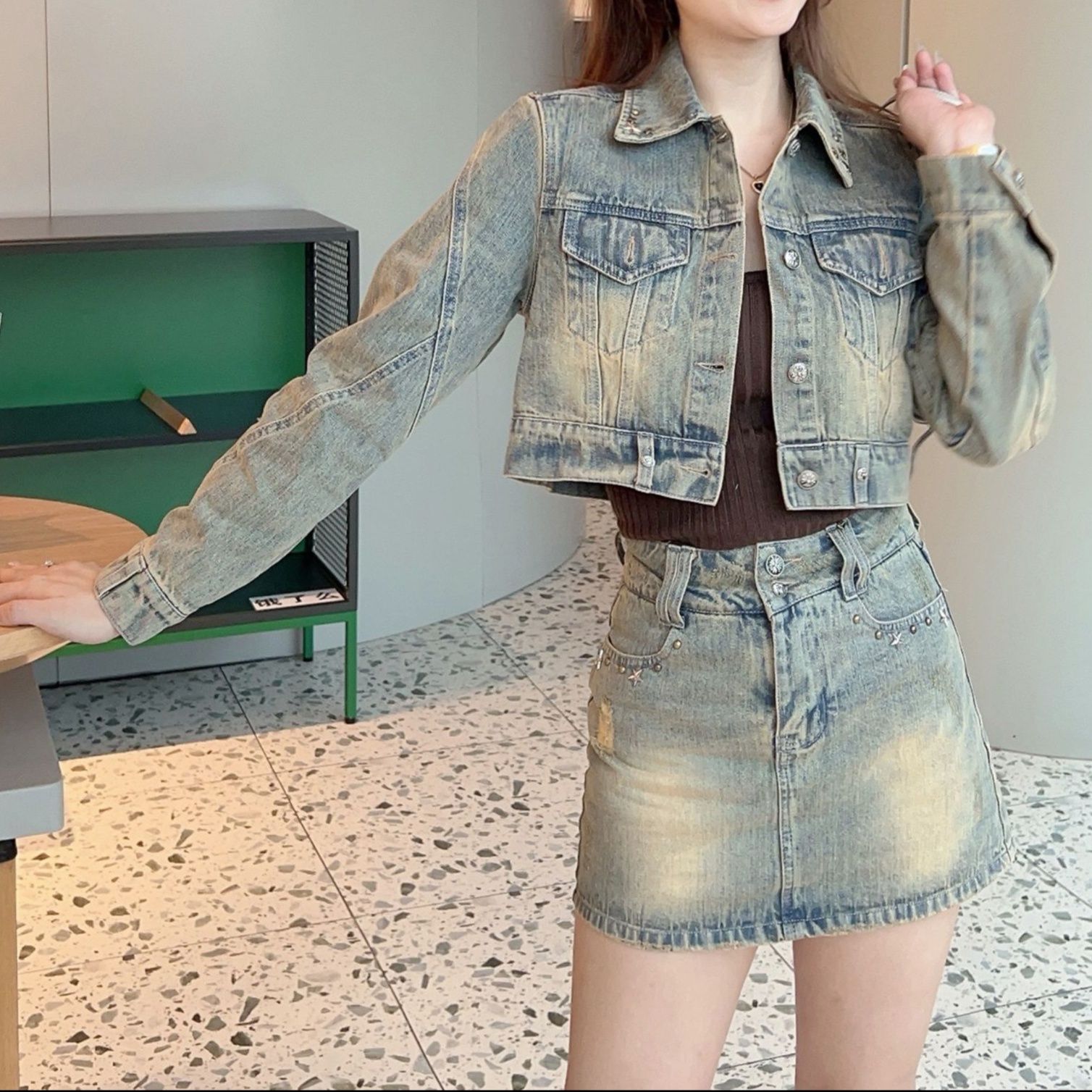 程よく色落ちした風合いが魅力的なデニムセットアップです。
