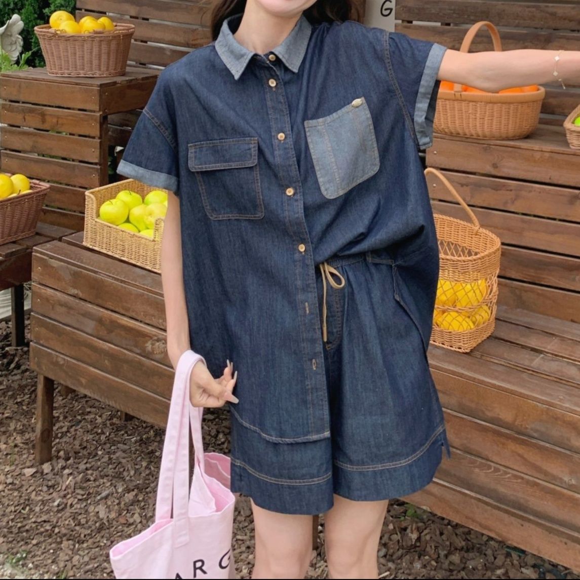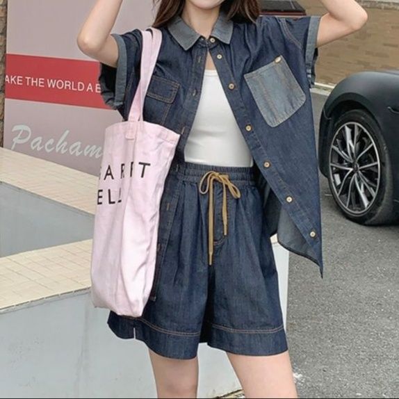 デニムセットアップの中でも一枚で着られる便利なシャツセットアップは、普段使いからお出かけまで幅広く活躍します。