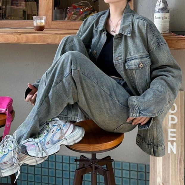 オーバーサイズのジャケットとワイドパンツを組み合わせたデニムセットアップで、こなれ感のある着こなしが叶います。
