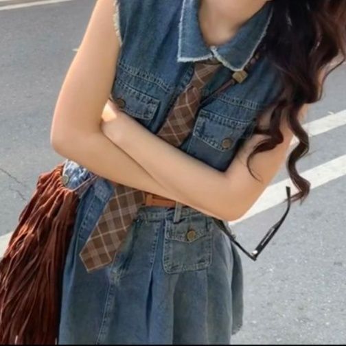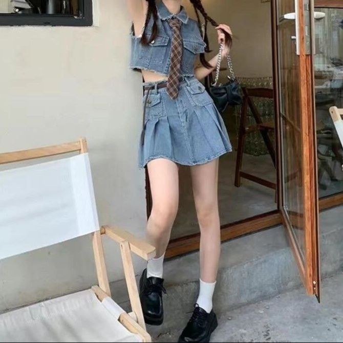 チェック柄のネクタイを合わせてスクール風のコーディネートもお楽しみいただけます。
