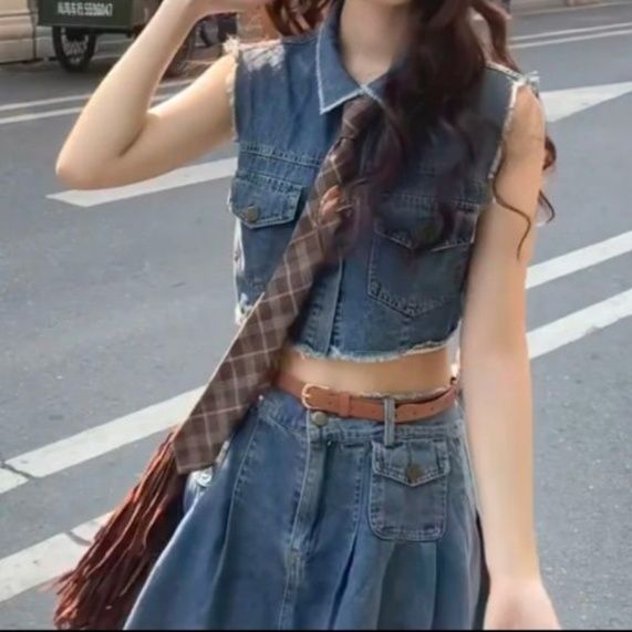 ノースリーブトップスはフリンジデザインで抜け感のある仕上がりになっています。