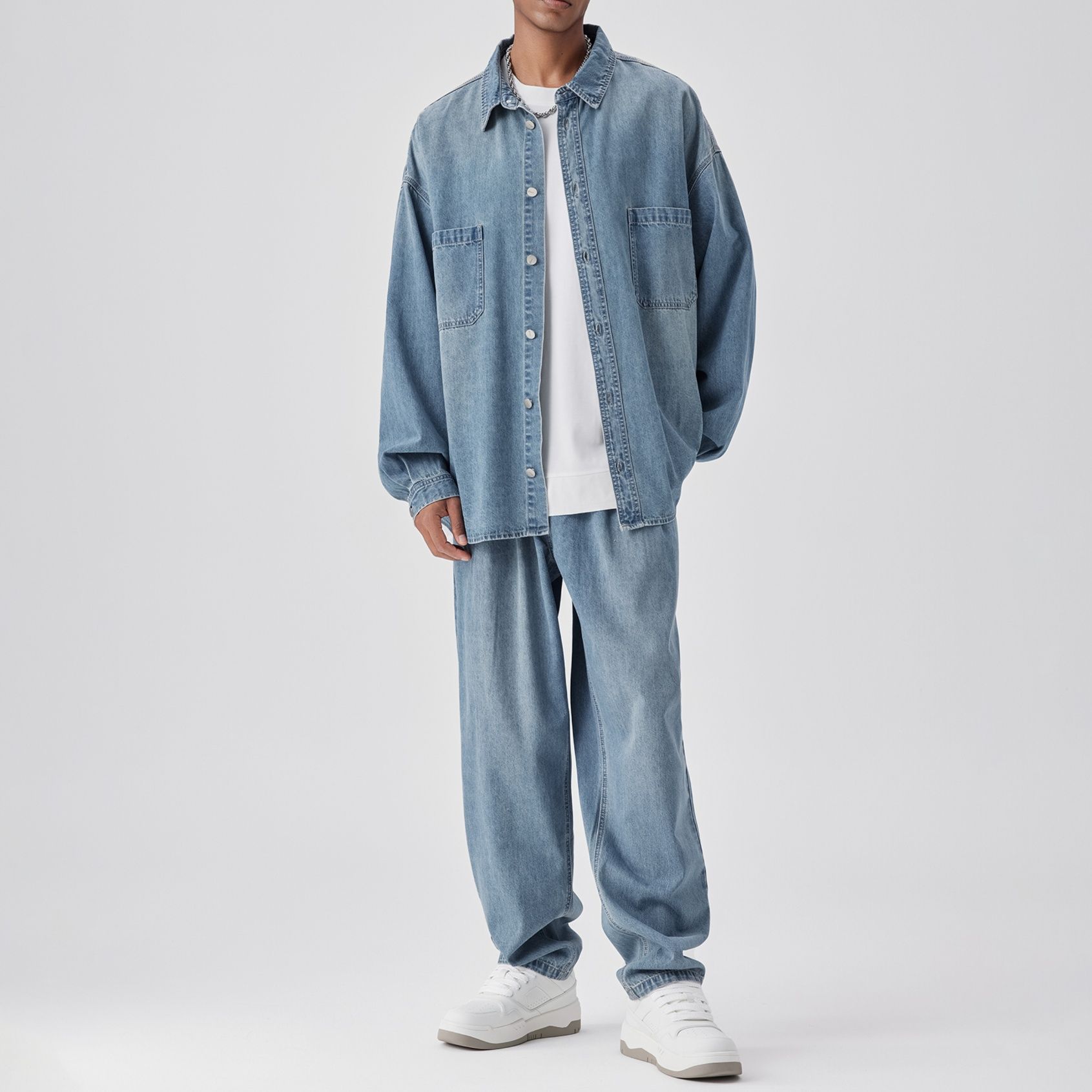 トレンド感のあるオーバーサイズシルエットが魅力のデニムセットアップです。