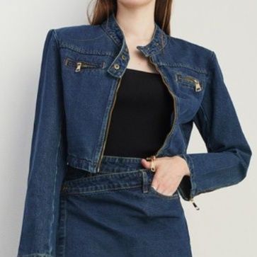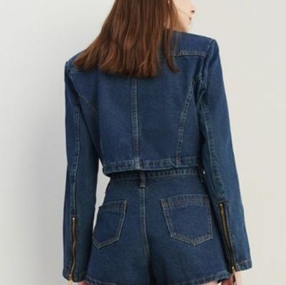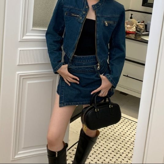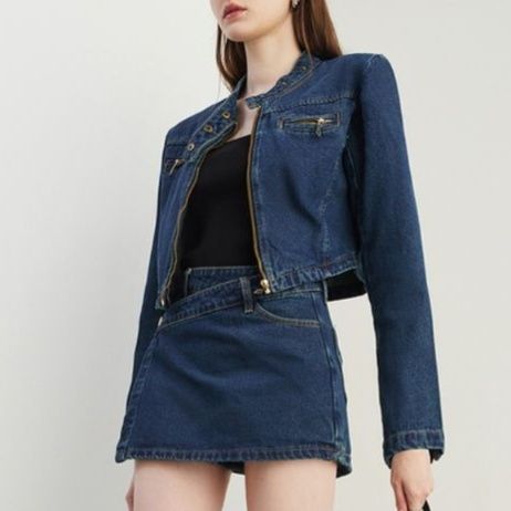 トレンド感溢れるジージャン セットアップは、ショート丈のジャケットとミニスカートの組み合わせが魅力的なデニムセットアップです。