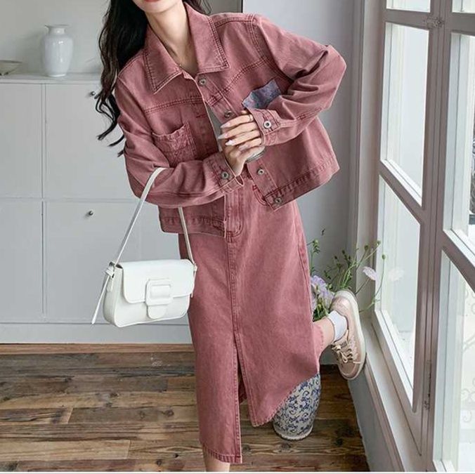 ゆったりジャケットとスカートで快適な着心地とトレンド感を演出