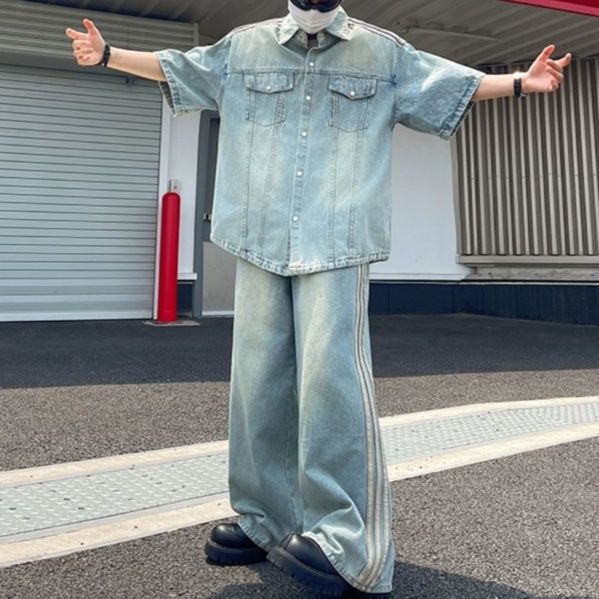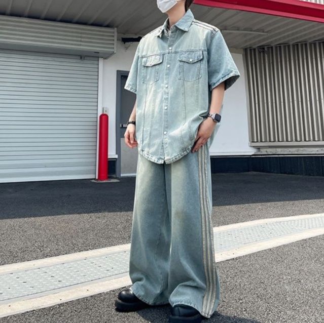 ゆったりとしたシルエットが特徴のデニムセットアップです。