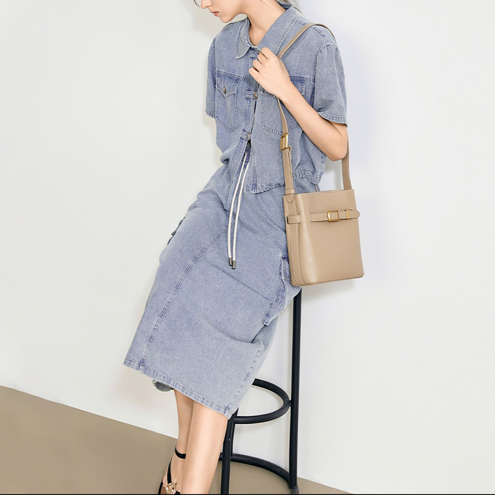 上下を合わせればおしゃれなワンピース風のスタイリングが完成します。