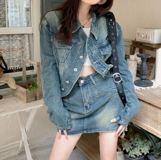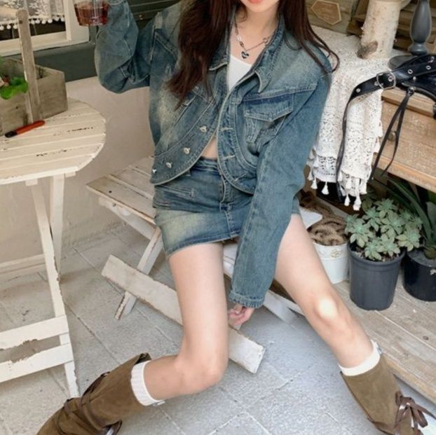 ジャケットとミニ丈のスカートが相性抜群で、スタイルアップ効果も期待できます。