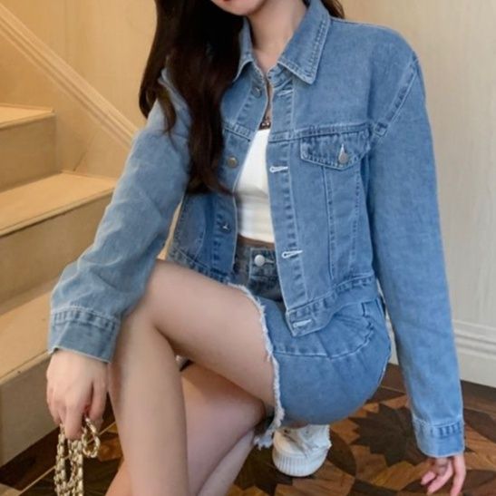 ジャケットとスカートの統一感のある組み合わせで、カジュアルながら洗練された印象に