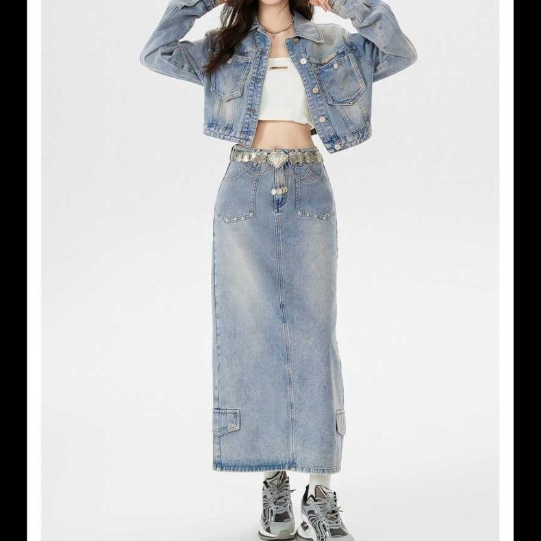 程よい色落ちが味わい深いジャケットとスカートのセットアップです。