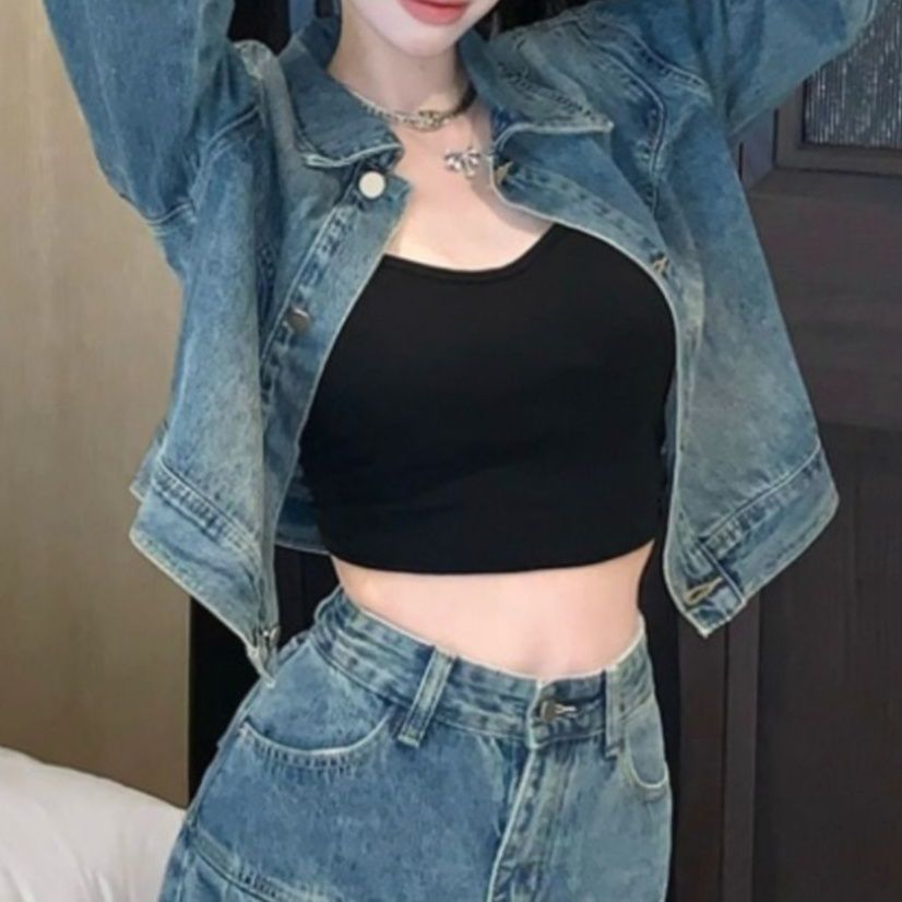 ジャケットとスカートのデニムセットで統一感のあるコーディネートが完成