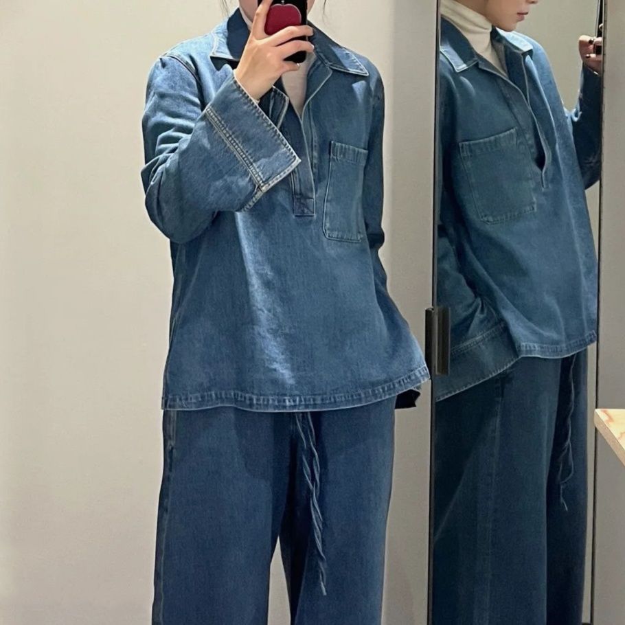 カジュアルで洗練された印象を与えるデニムセットアップです。