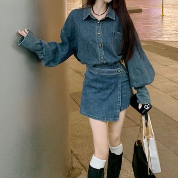 袖のボリューム感がこなれた印象と程よいカジュアル感を演出するシャツセットアップ。