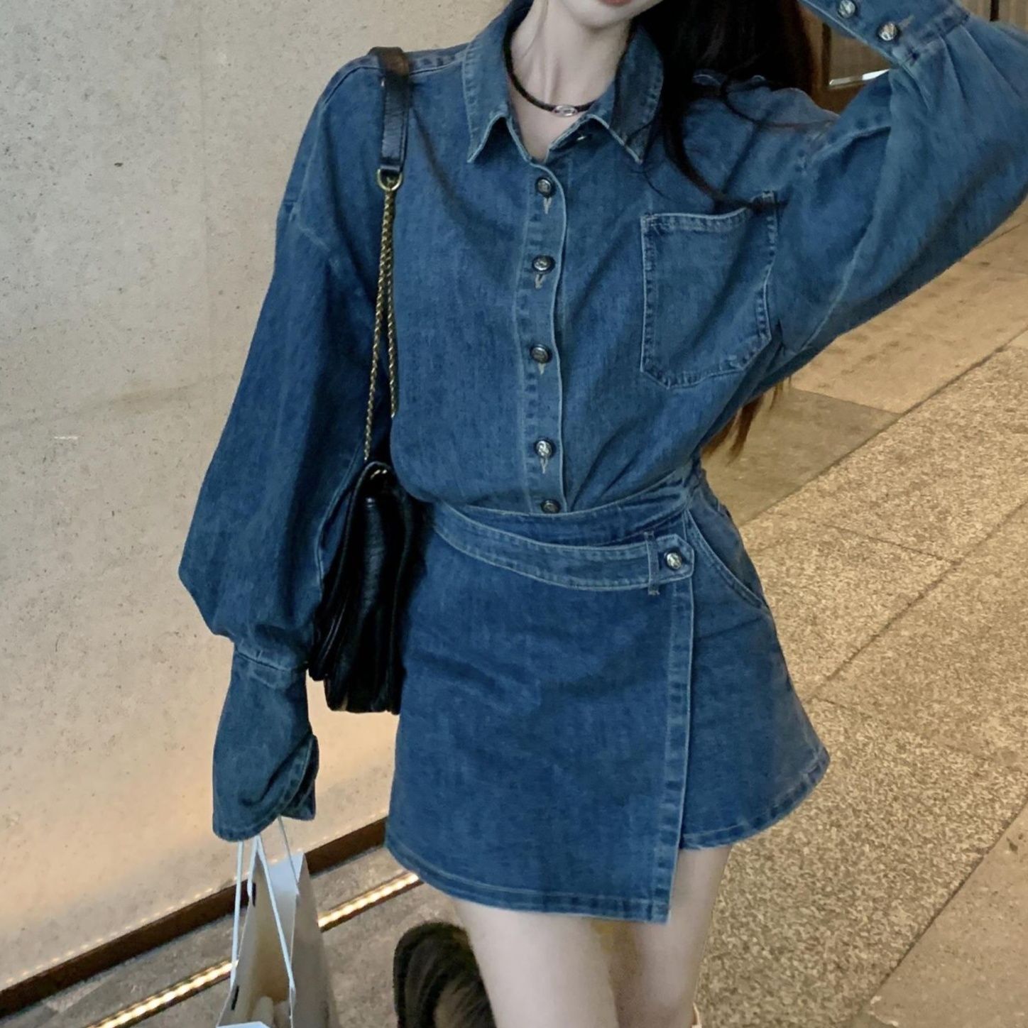 程よい厚みと柔らかさのあるデニム生地で、カジュアルながら品のある仕上がり