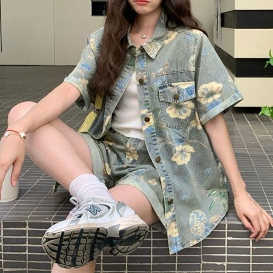 半袖シャツと短めのショートパンツのシャツセットアップで、夏の爽やかなコーディネートが完成します。