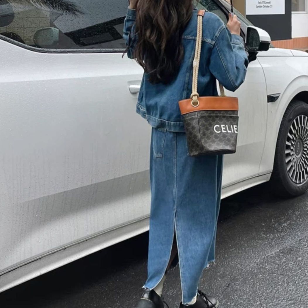 クラシカルなデニム素材でありながら、全体的なバランスが洗練された印象に