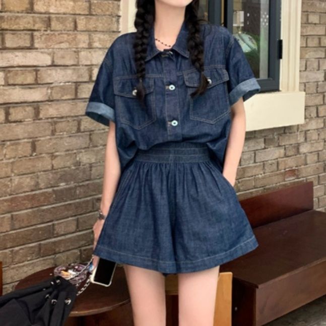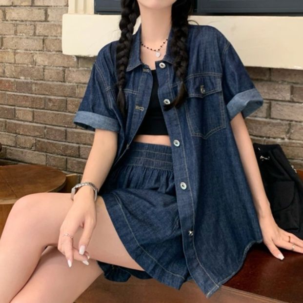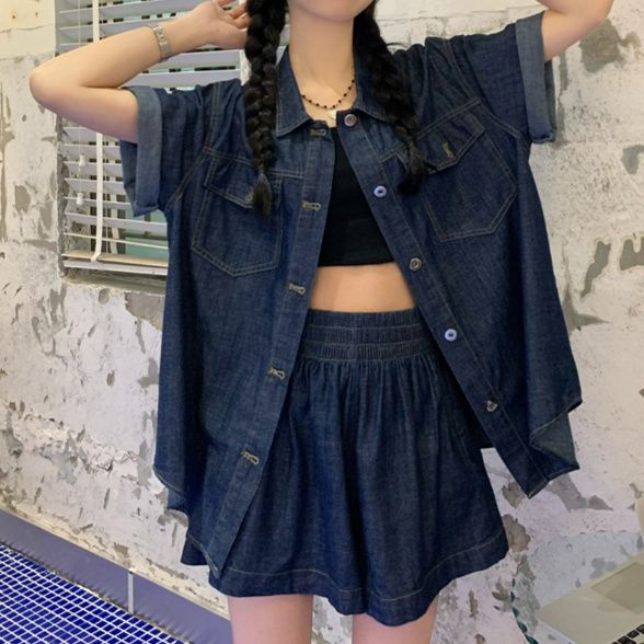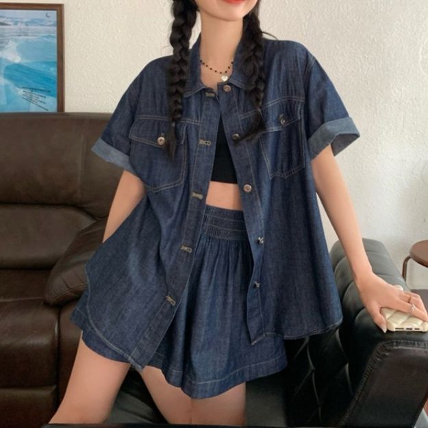 デニムセットアップから登場した夏にぴったりのシャツセットアップ。