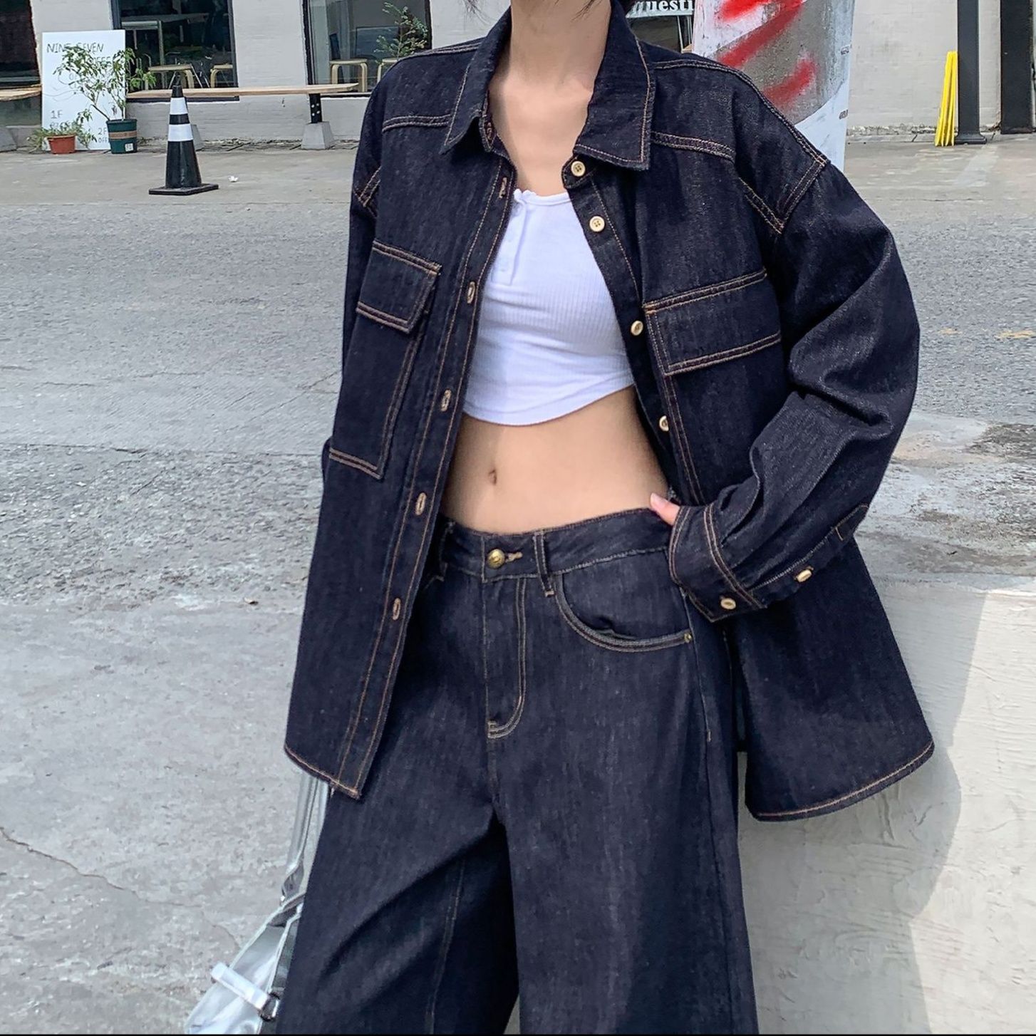 デニムセットアップの定番を現代風にアレンジした一着。