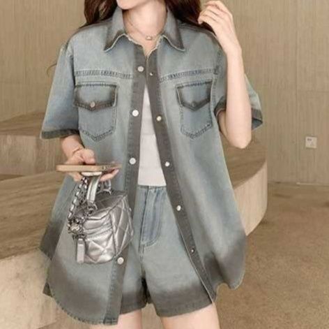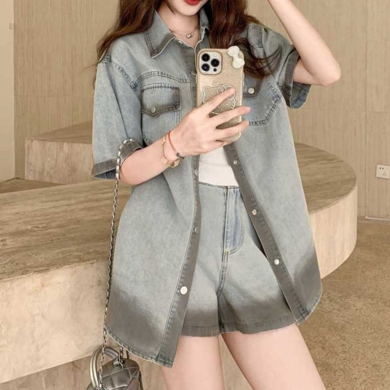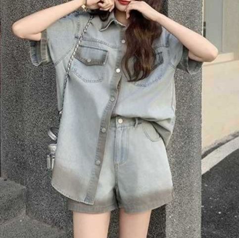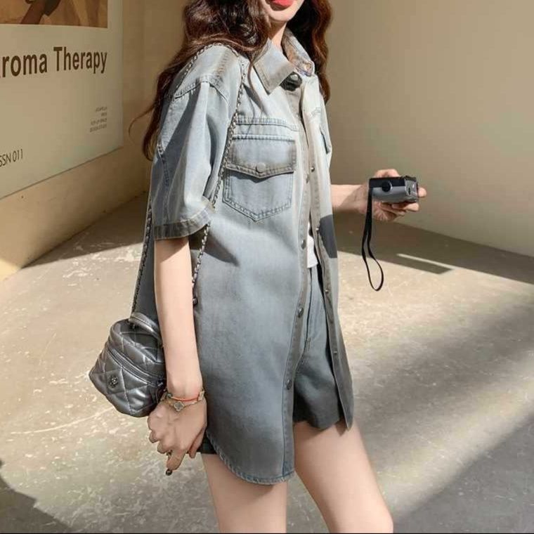 同素材のシャツとショートパンツで洗練された夏のスタイリングに